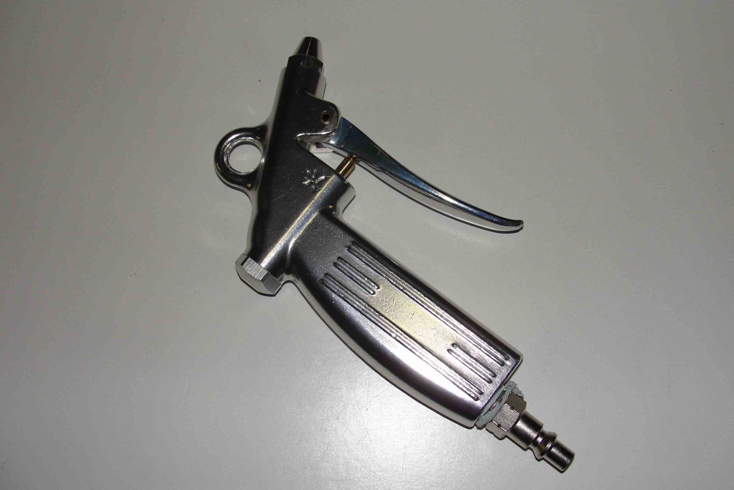 Deutsches Fabrikat aus Anticorodal, mit Einlochdüse (siehe Sicherheitshinweise). Blaskraft durch langen Abzughebel gut dosierbar, Gewicht 230 g, Düsengewinde M12x1,25. Mit Stecknippel A 1840. Max. Betriebsdruck: 16 bar. Empfohlener Arbeitsdruck: Max. 3,5 bar. Luftverbrauch: 120l/min bei 6 bar.